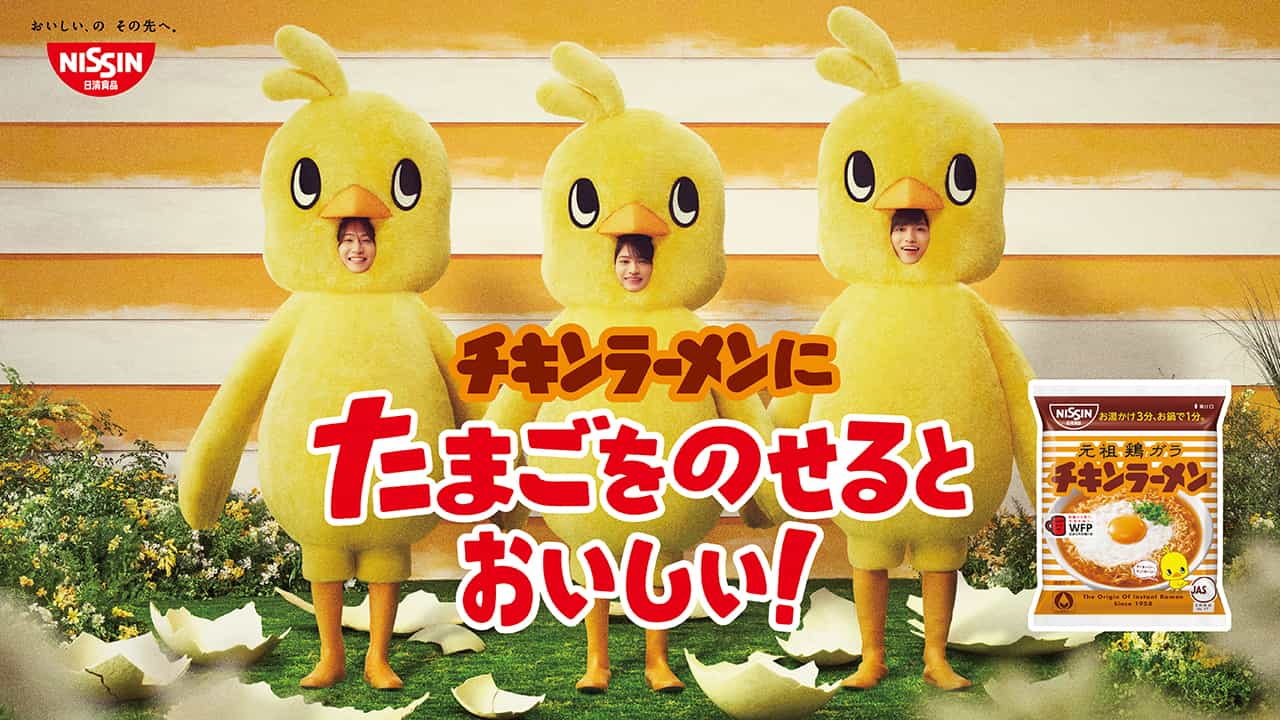 日清食品は2025年12月27日から、timeleszの橋本将生、猪俣周杜、篠塚大輝を起用した「チキンラーメン」のテレビCM「ひよこちゃんたち誕生」篇の放映を開始。