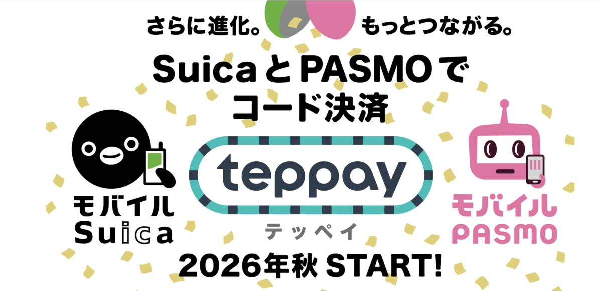JR東日本は11月25日、以前に予告していた通り、「モバイルSuica」のアップデートを行い、新たにコード決済サービス「teppay(テッペイ)」を開始すると発表した。提供開始時期は2026年秋の予