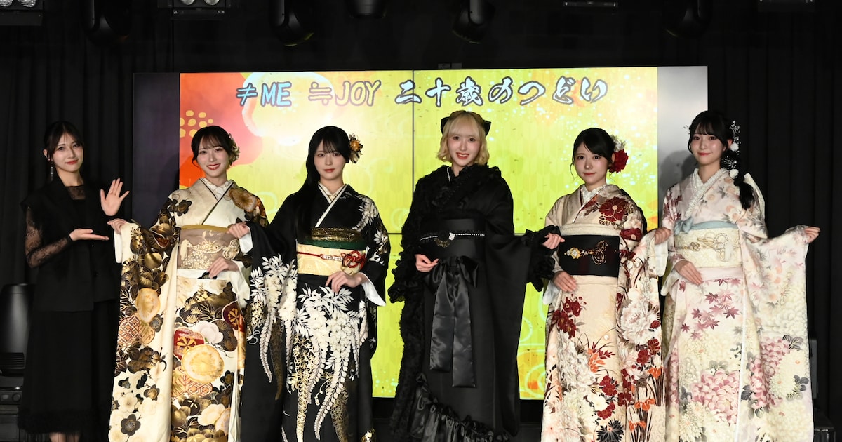 指原莉乃(33)プロデュースのアイドルグループ、≠MEの川中子奈月心(かわなご・なつみ、20)と、≒JOYの逢田珠里依(20)江角怜音(20)大西葵(20)山田杏佳(19)が16日、都内で、節目の歳を祝う恒例イベント「二十歳のつどい 2…