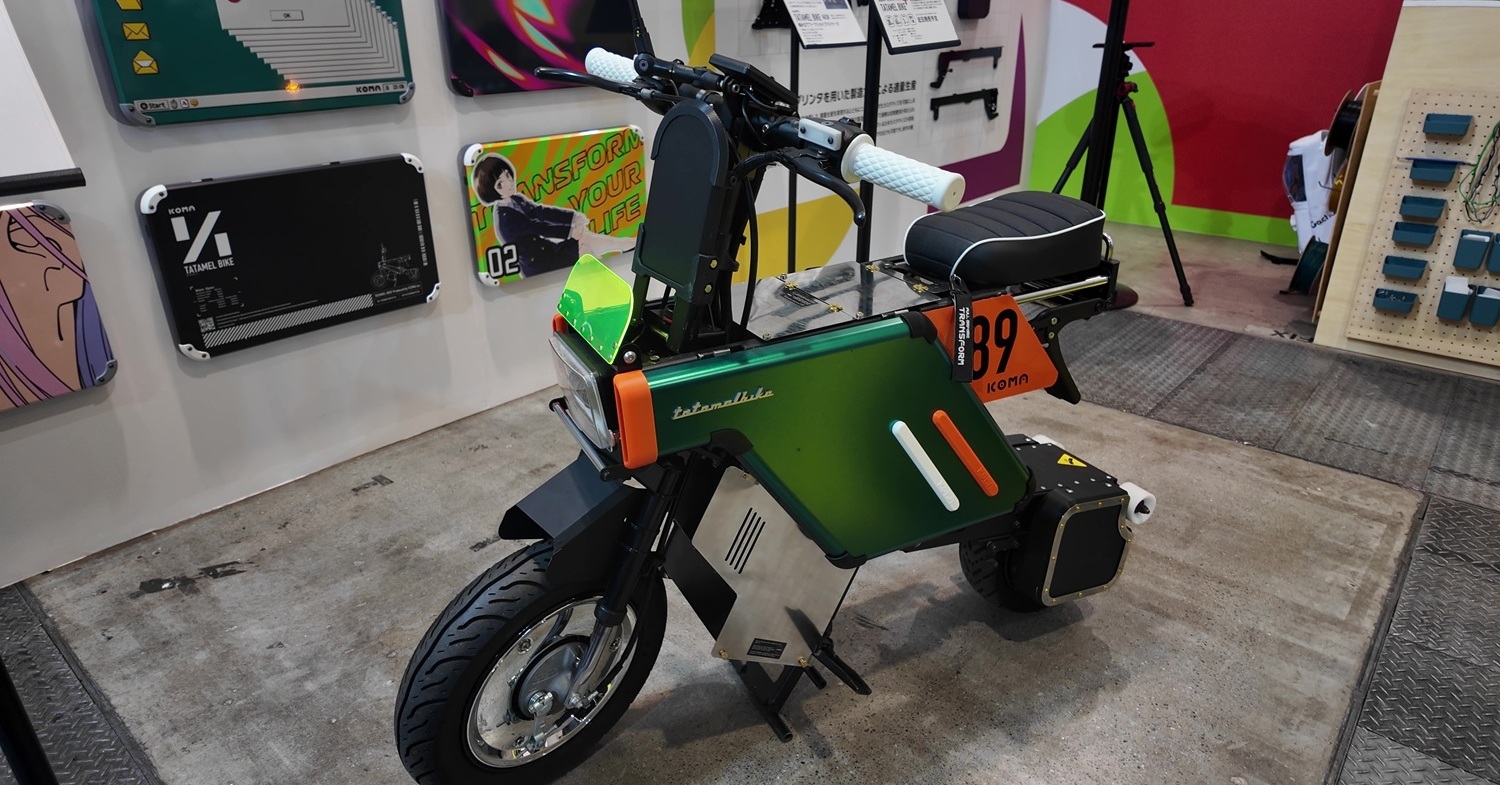 ホンダの原動機付自転車「モトコンポ」を思わせる見た目で話題になった、箱型に折りたためる電動バイク「TATAMEL BIKE」。「Japan Mobility Show 2025」では、開発会社のICOMA(東京都大田区)も過去最大のブースで出展。カスタムの自由度を高めた「タタメルバイク プラス」のコンセプトモデルなどを公開した。